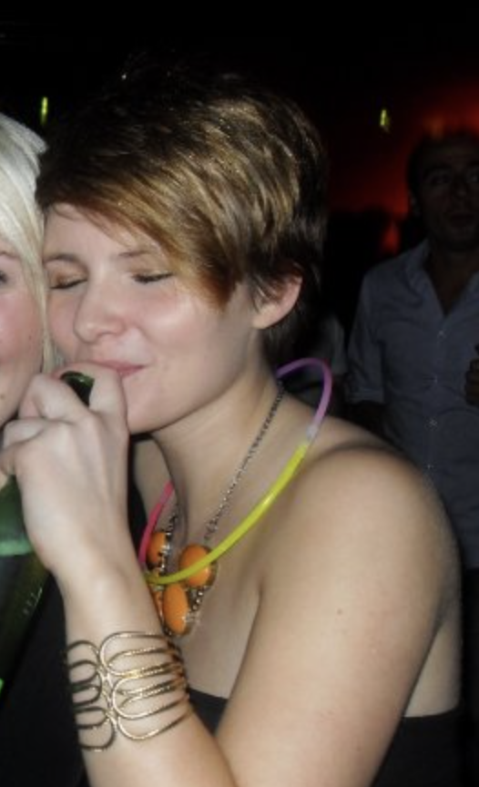 University. At a student nightclub with my flatmates. Alcopops, glowsticks. A dress that was on sale. Eyeshadow I'd borrowed. Heels I couldn't walk in.